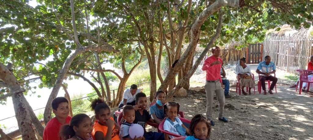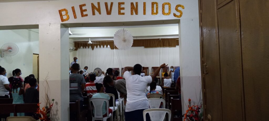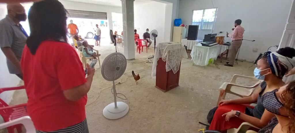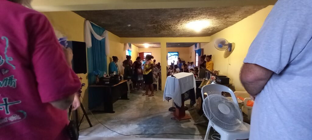 This couple traveled with us & served as interpreters. He would start the services off with music.